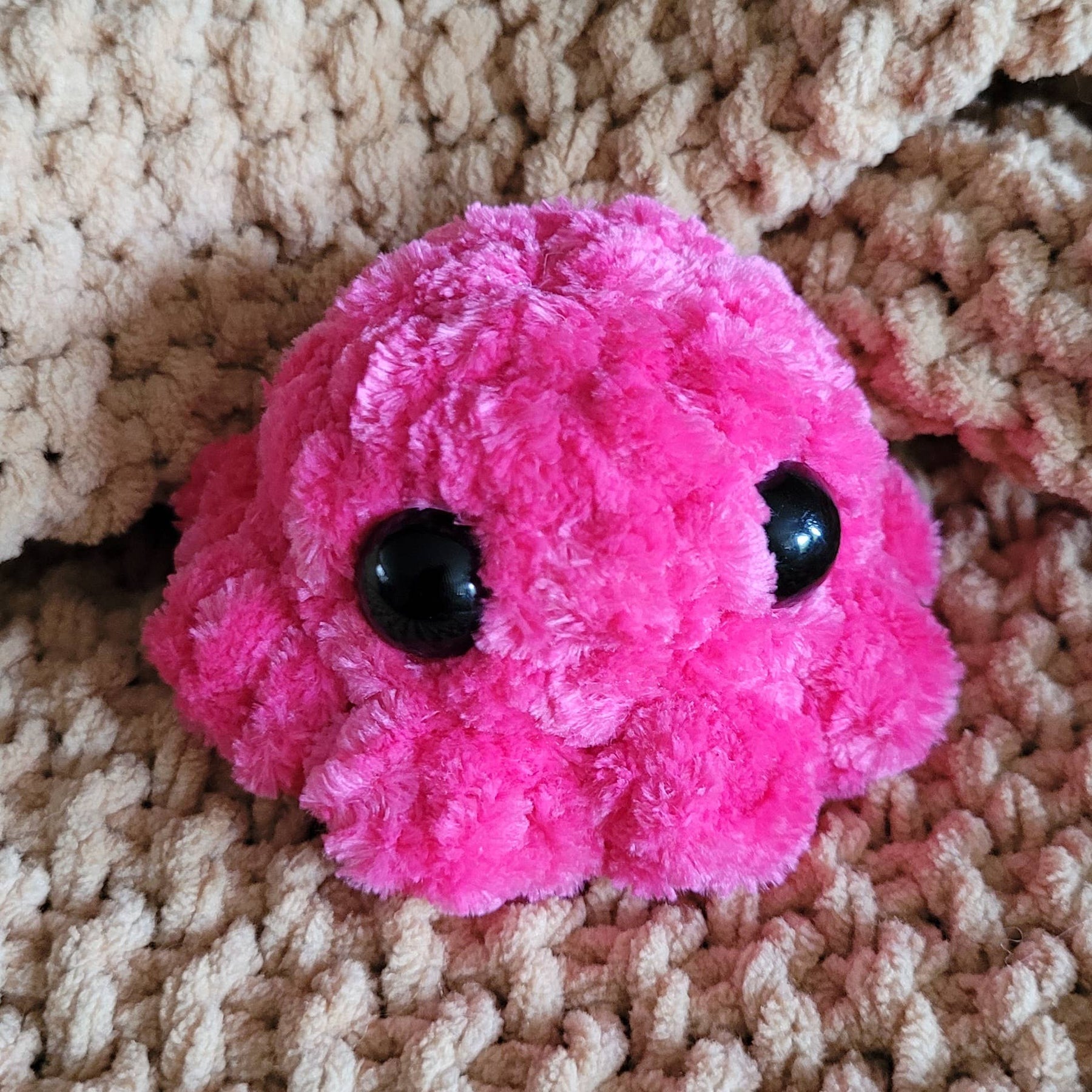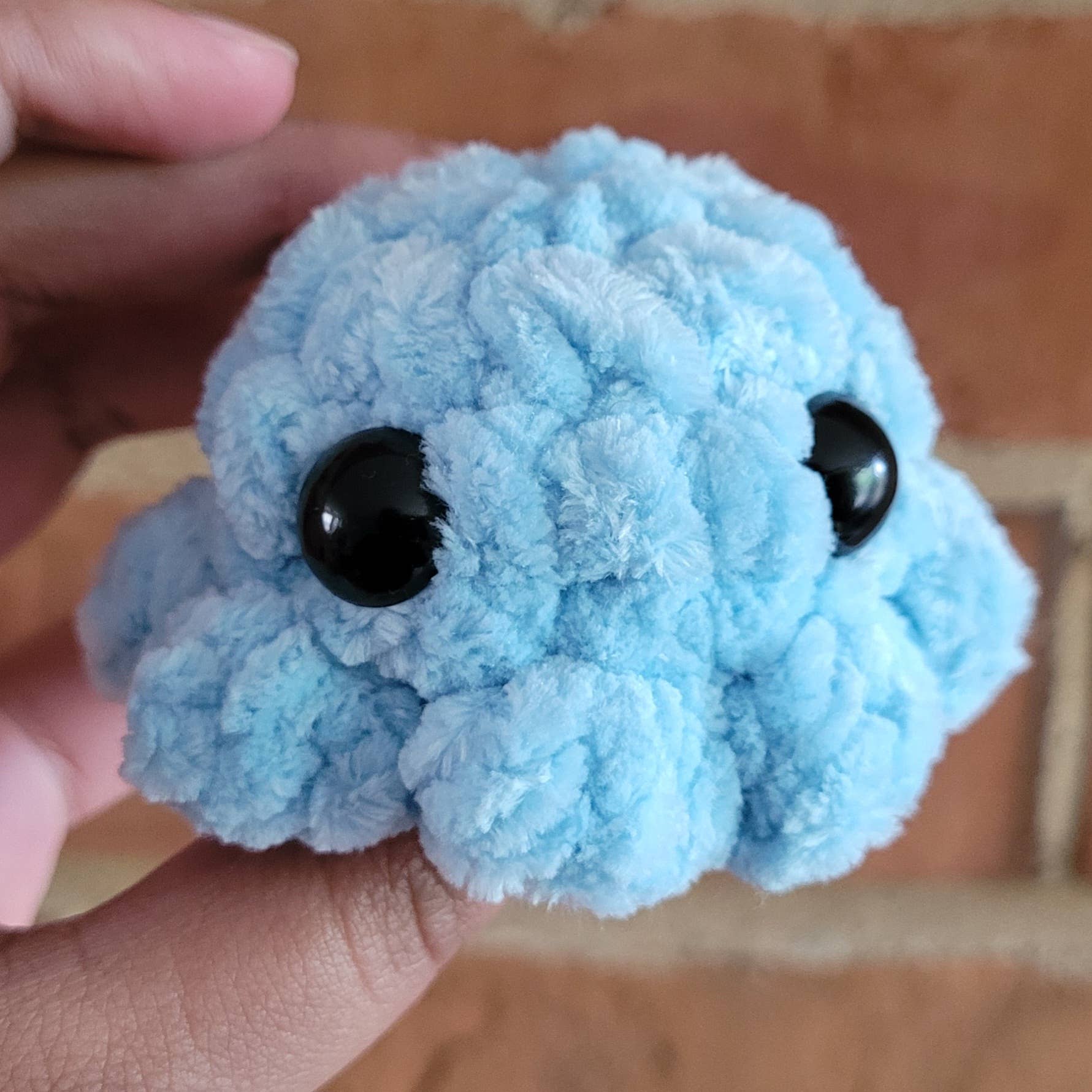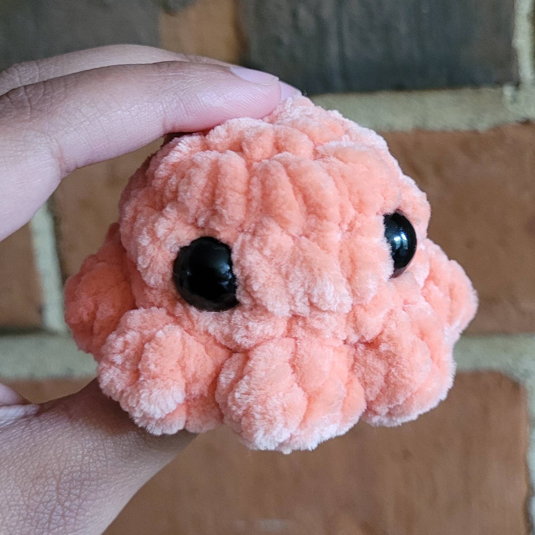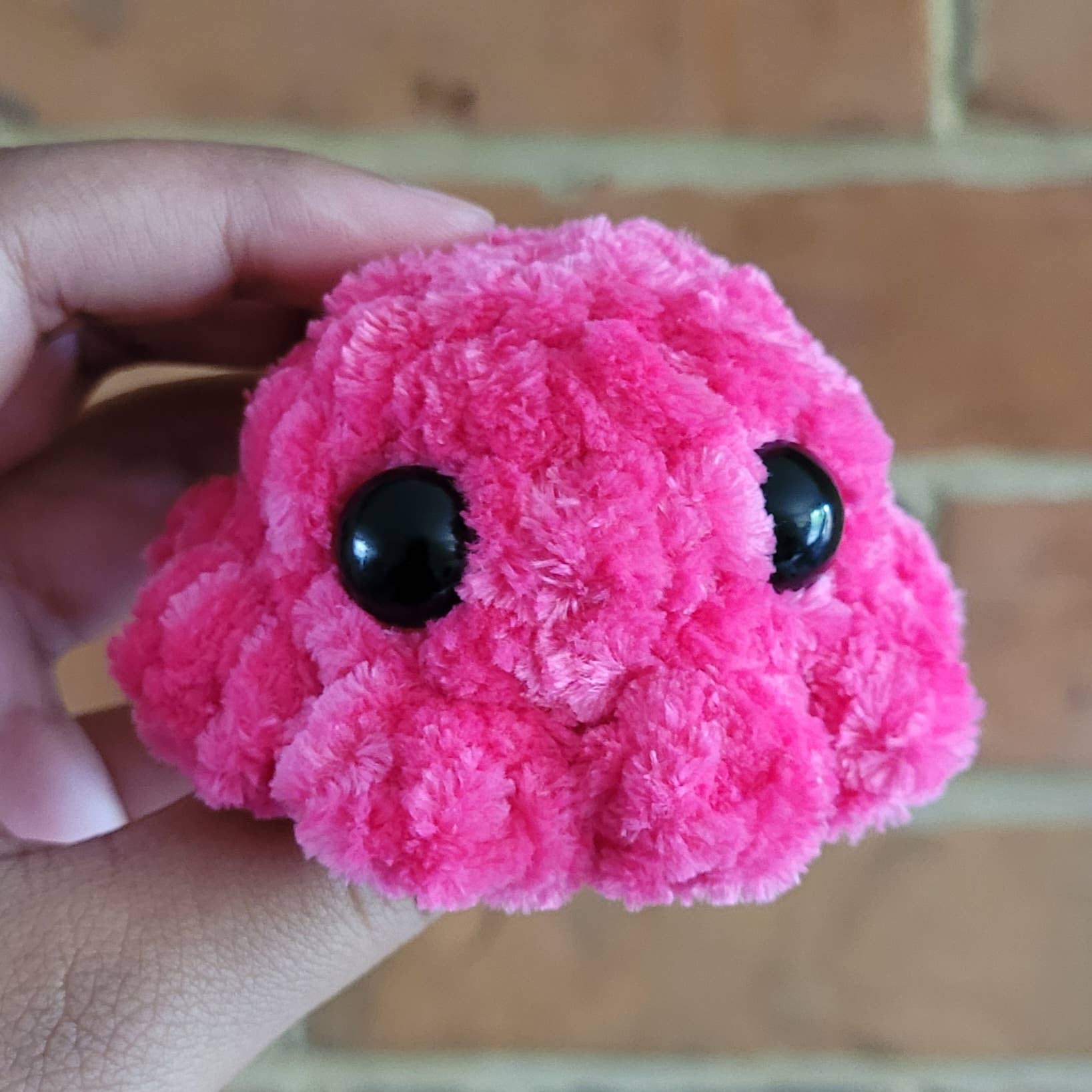 Tiny, adorable, and full of charm — meet your new favorite pocket companion! This 3-inch crochet octopus is lovingly handmade with super soft, high-quality polyester chenille yarn, featuring the cutest big eyes, and little bobble tentacles. Whether you're looking for a thoughtful gift, a cheerful desk buddy, or a whimsical addition to your plushie collection, this mini octo is sure to bring a smile to your face. Material: 100% Polyester Chenille Measurements: 3 x 2 inches