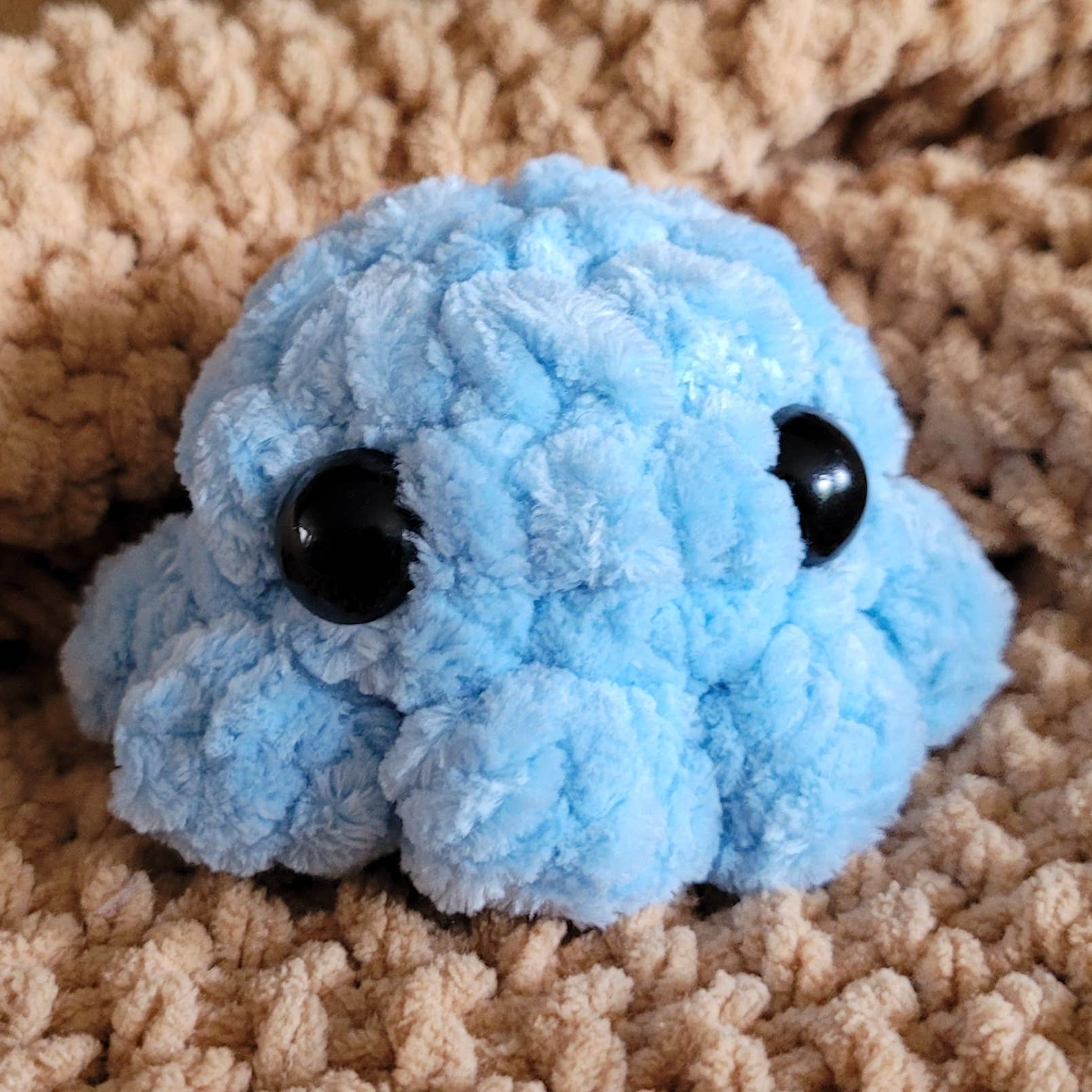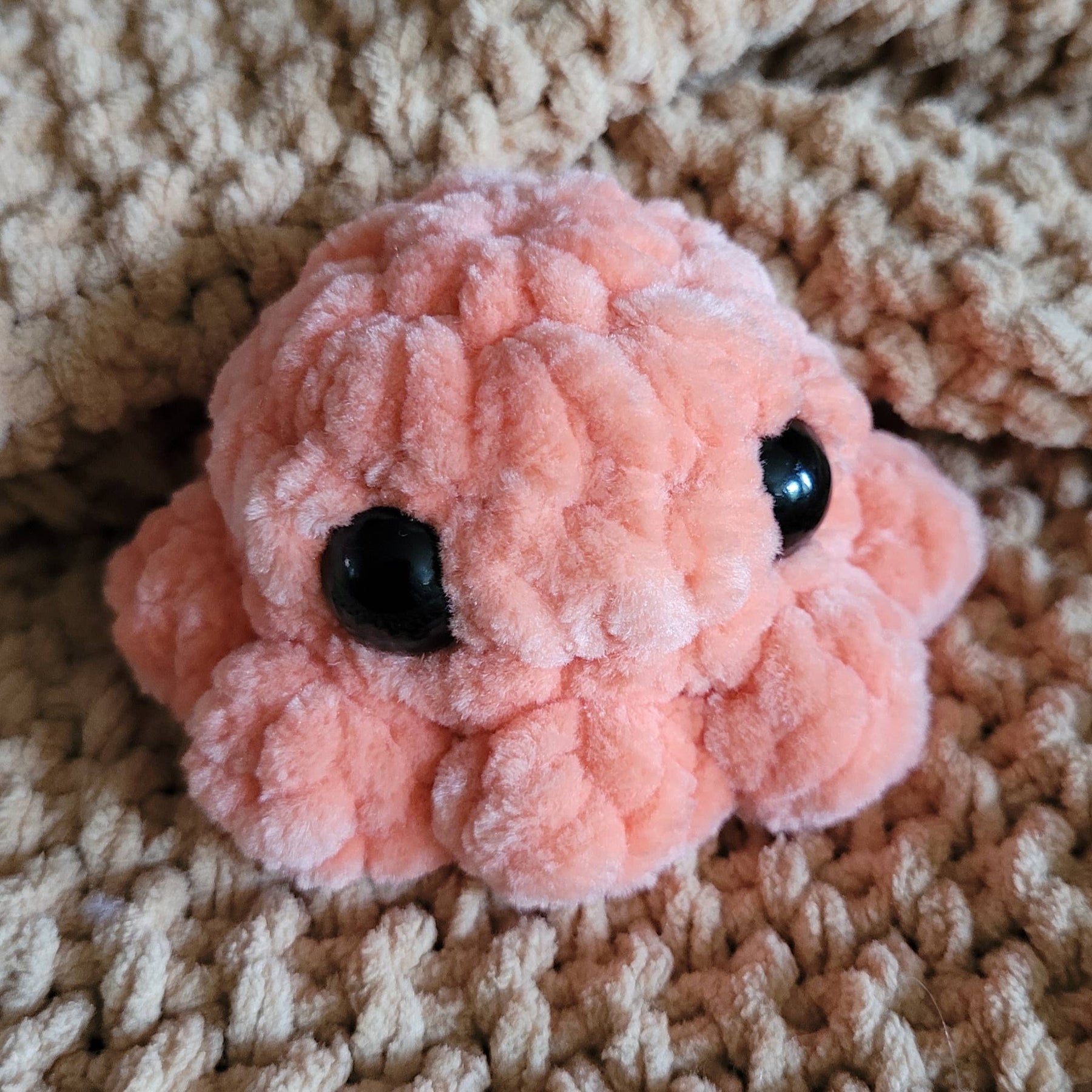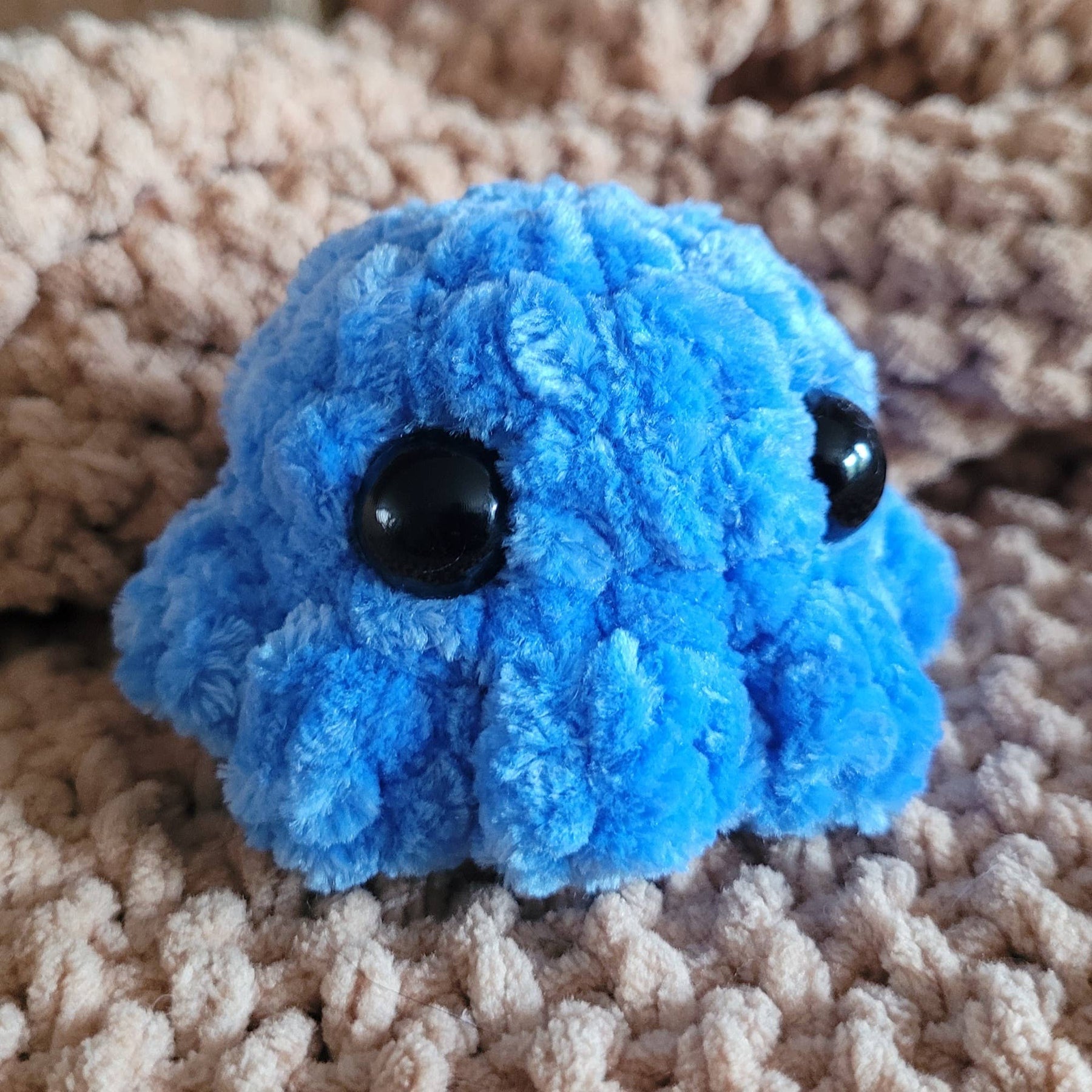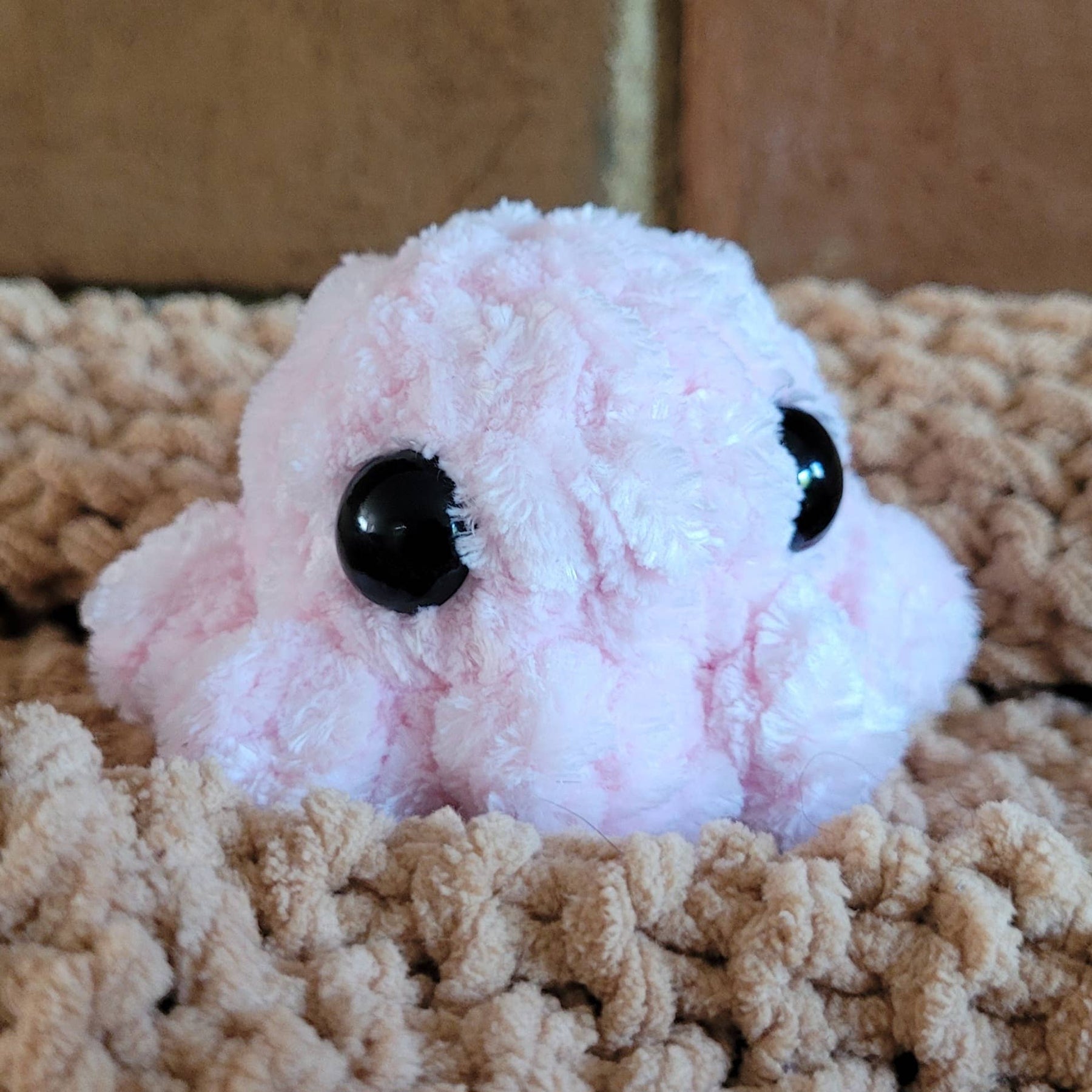 Tiny, adorable, and full of charm — meet your new favorite pocket companion! This 3-inch crochet octopus is lovingly handmade with super soft, high-quality polyester chenille yarn, featuring the cutest big eyes, and little bobble tentacles. Whether you're looking for a thoughtful gift, a cheerful desk buddy, or a whimsical addition to your plushie collection, this mini octo is sure to bring a smile to your face. Material: 100% Polyester Chenille Measurements: 3 x 2 inches