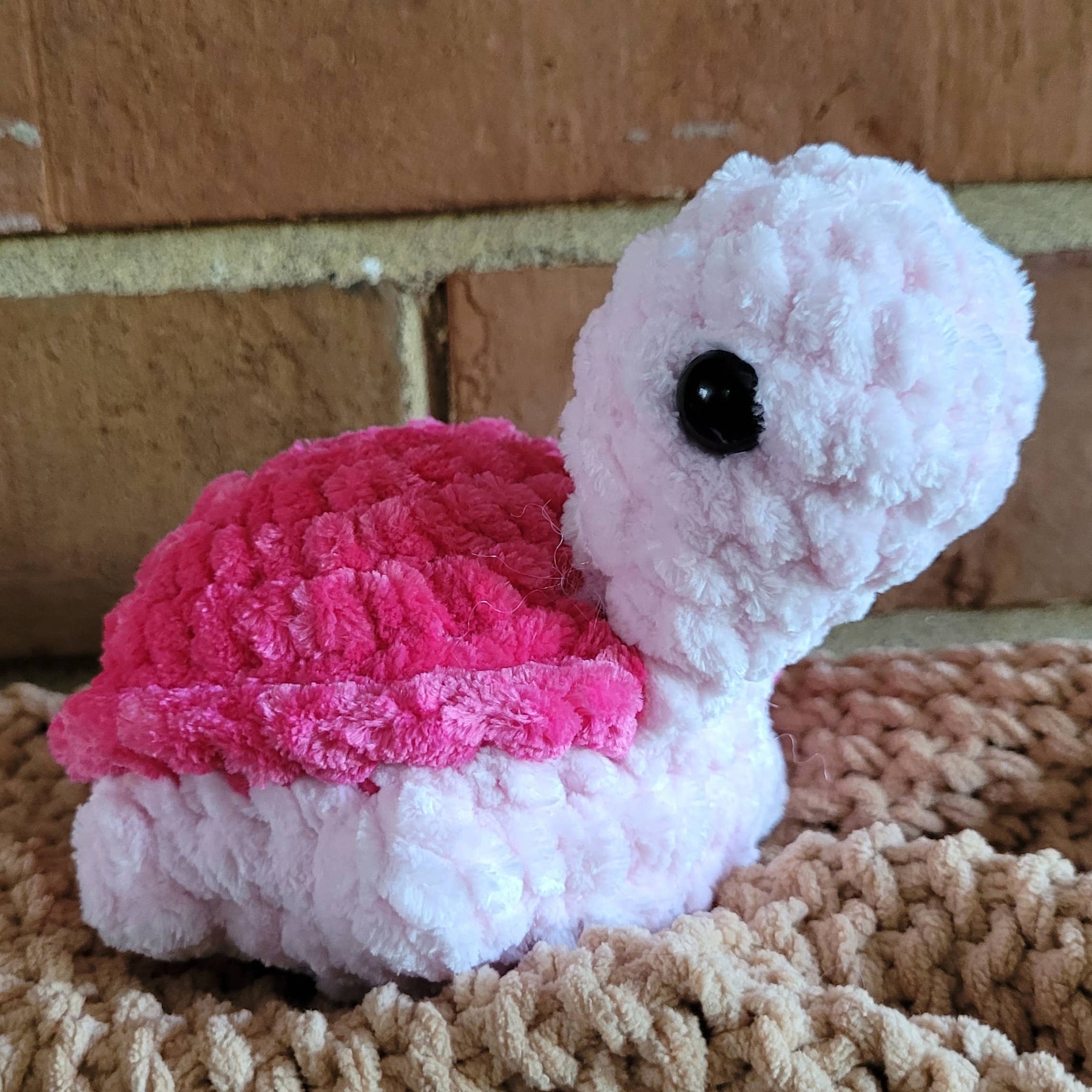6" Crochet Turtle Plushie: Bright Pink/Petal