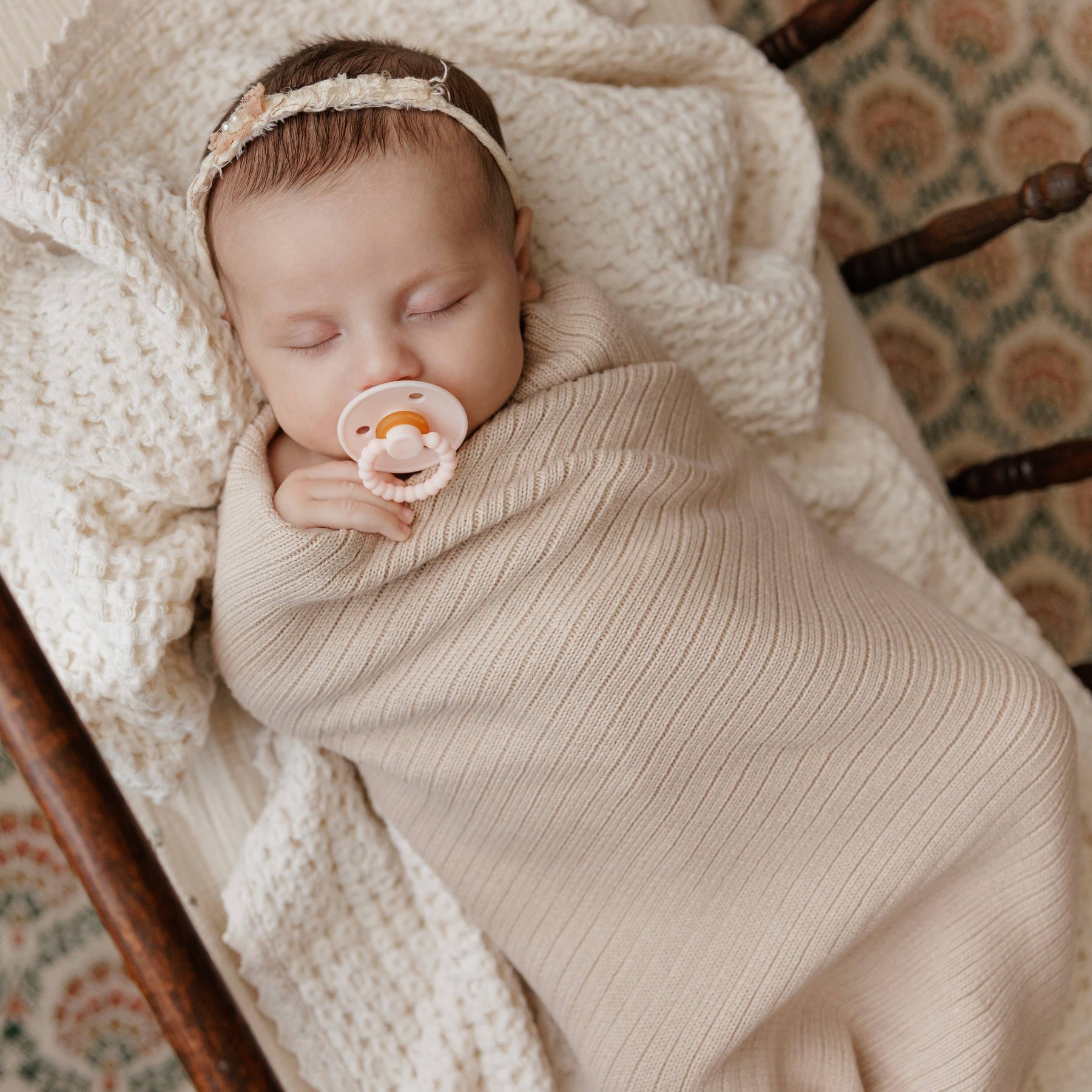 New! Organic Ribbed Stretchy Blanket: Our organic ribbed stretchy blanket is made from the finest luxury organic cotton, providing a soft, breathable touch. The ribbed texture adds gentle flexibility, making it ideal for a secure and cozy swaddle. Lightweight and Breathable: Crafted with 100% luxurious organic fine loomed cotton. Tenderly soft, breathable, and gentle enough for newborn babies delicate skin. Warm, but lightweight, perfect for keeping baby baby safe and secure. Versatile and Durable: Measuring 36" x 32" perfect size for any stroller, car seat, crib, and bassinet. Great as as a wrap, swaddle or cuddle blanket. Cozy during the winter yet comfortable in warm weather. * Machine washable, tumble dry on low. * Packaged in textured ribbon. Tagged, polly bagged, and barcoded. * Your purchase matters. 10% of profits donated to infertility charities.