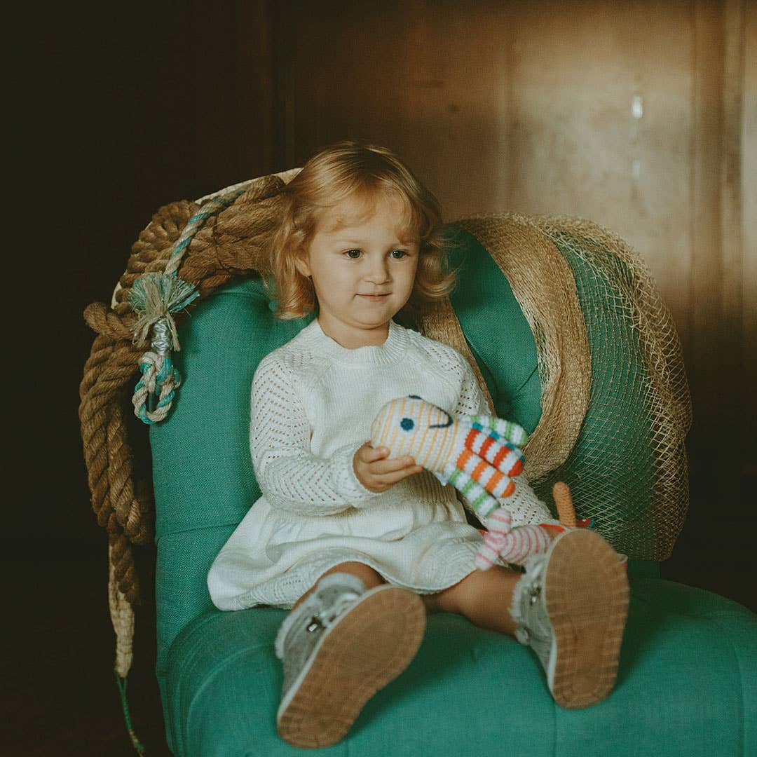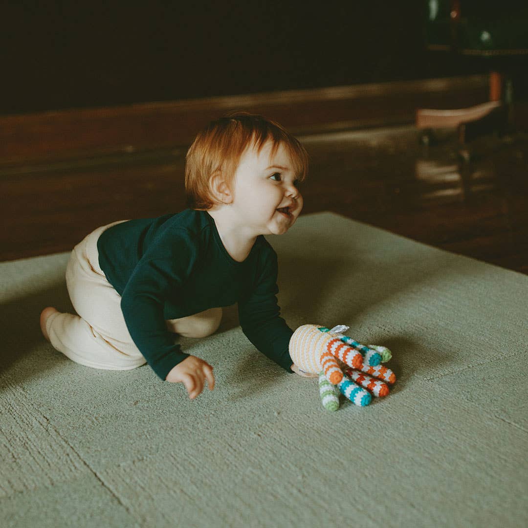 This best selling happy little plush octopus rattle is an eye catcher! Full of color and personality, this stuffed animal is the perfect stroller companion and loves summer trips to the beach. Handmade with lightweight cotton yarn, its soft rattle when shaken is sure to bring endless laughter and joy to babies everywhere. The tentacles are perfect for tiny hands to grab a hold of. Pairs nicely with our crab and narwhal rattles.