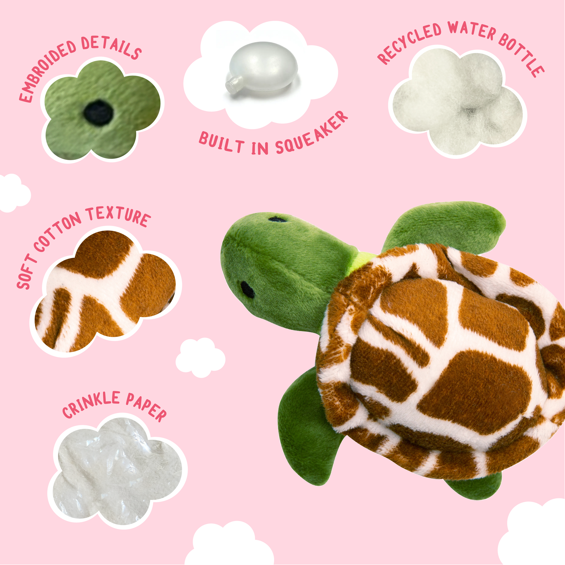 Introducing the irresistibly adorable Baby Shelldon, the perfect pint-sized playmate for puppies and small dogs. Inspired by his beloved big brother, Shelldon the Turtle, Baby Shelldon brings the same cuddly charm and playful spirit to a smaller, more manageable size. Crafted with a soft yet durable plush material, Baby Shelldon is designed for both comfort and longevity, making him a favorite for both snuggles and playtime. Inside, he's packed with crinkly material for a satisfying chew experience, plus a super fun squeaker to keep your pup endlessly entertained. 3"x1.5"x5".