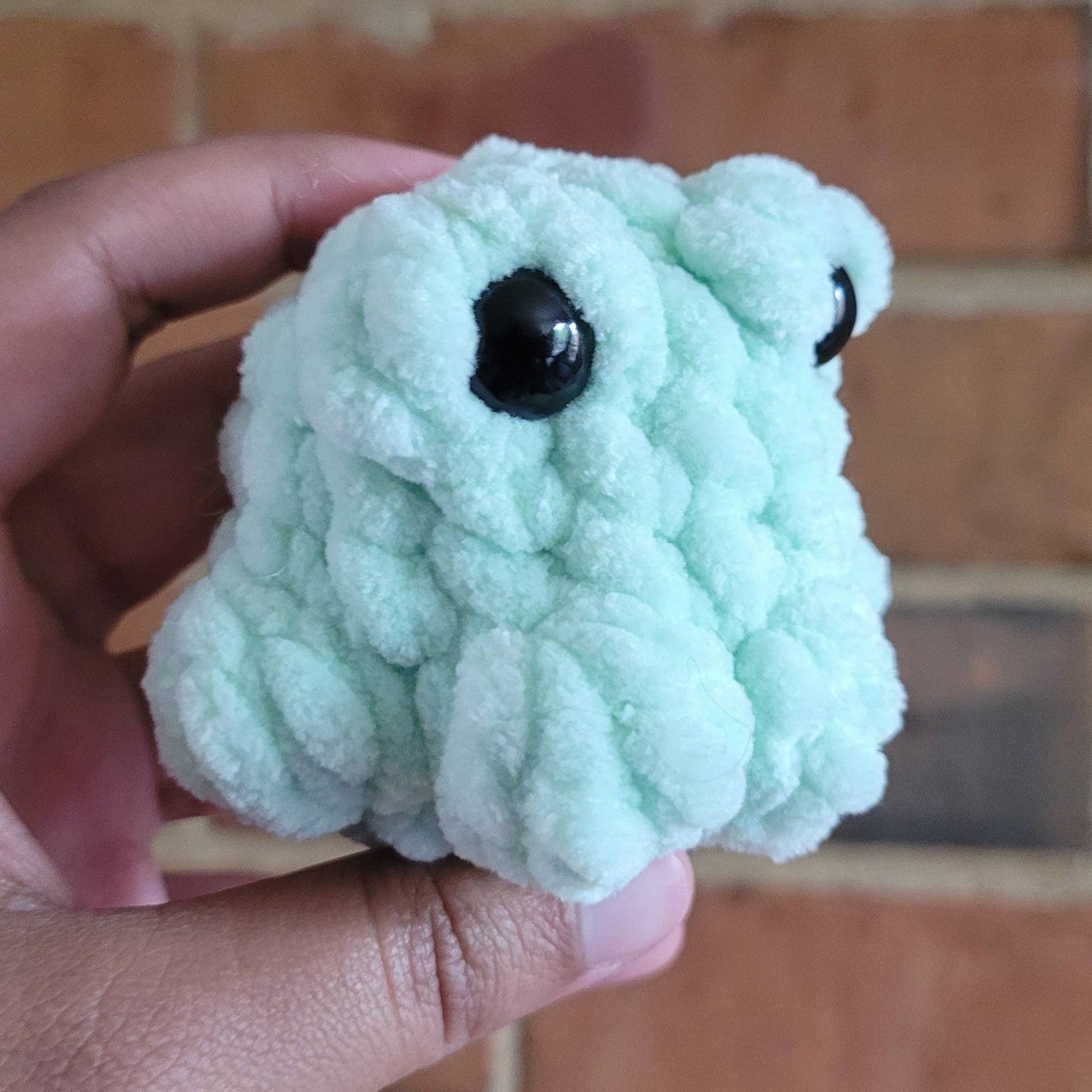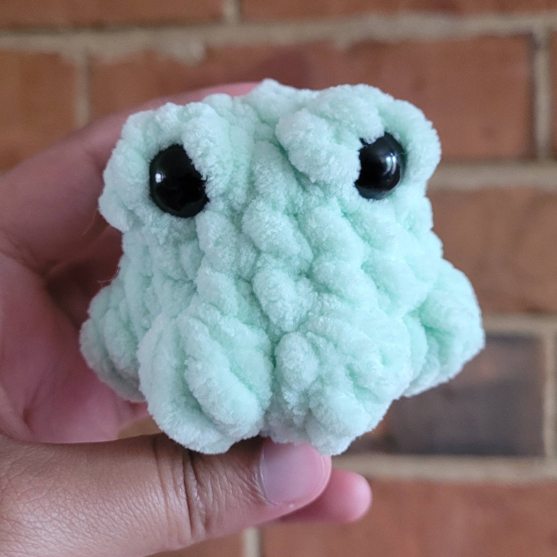 Tiny, adorable, and full of charm — meet your new favorite pocket companion! This 3-inch crochet frog is lovingly handmade with super soft, high-quality polyester chenille yarn, featuring the cutest big eyes, and little bobble feet. Whether you're looking for a thoughtful gift, a cheerful desk buddy, or a whimsical addition to your plushie collection, this mini froggy is sure to bring a smile to your face. Material: 100% Polyester Chenille Measurements: 3 x 2 inches